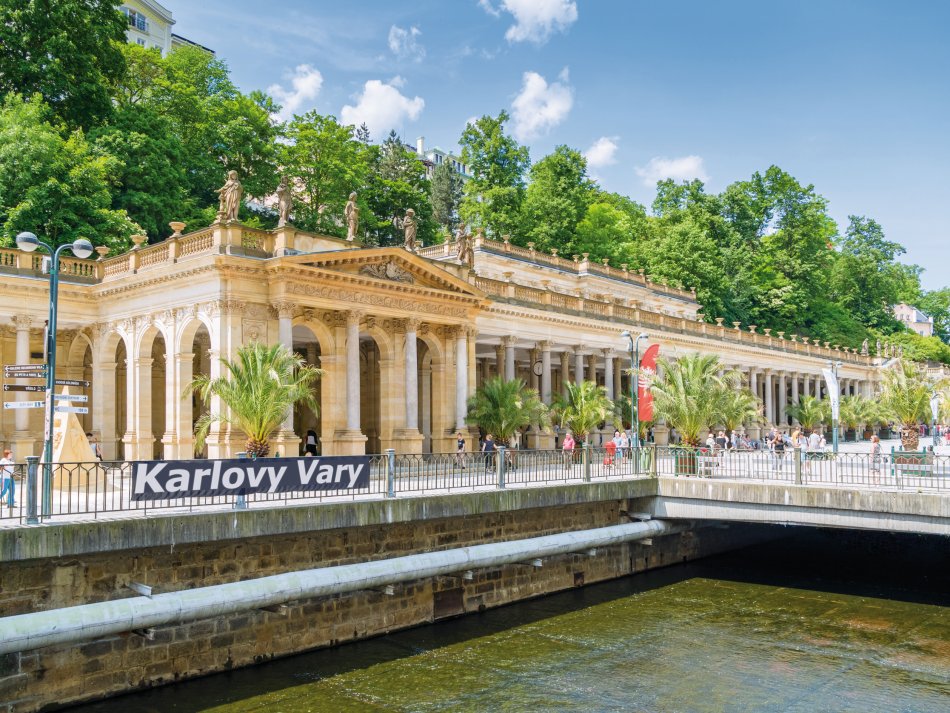 Elegante, prächtige Kur-Kolonnaden, eine herrliche Lage inmitten eines bewaldeten Tals und wohltuende Heilmittel – all das erwartet Sie in Karlsbad, dem größten Heilbad des Böhmischen Bäderdreiecks. Hier trafen sich im 18. und 19. Jahrhundert Kaiser, Könige, Zaren und Staatsmänner. Auch heute noch ist die Stadt ein beliebter Ort für Erholungssuchende aus aller Welt. In und um Karlsbad entspringen aus über 80 Stellen heiße hydrogencarbonat-, sulfat- und natrium-chloridhaltige Säuerlinge mit Temperaturen zwischen 30-72°C. Die größte und zugleich ergiebigste Quelle ist der „Sprudel“ genannte Geysir, aus dem bis zu 2.000 Liter Mineralwasser pro Minute empor springen. Insgesamt sind 26 Quellen bekannt. 13 von ihnen werden zu Heilzwecken eingesetzt, wie bspw. für Trinkkuren, Bäder und Spülungen. Die weiteren hiesigen Heilmittel, Naturgas, Schlamm und Moor, werden für weitere Kur-Anwendungen eingesetzt. Nicht zuletzt wegen seiner einzigartigen Architektur und den historischen Sehenswürdigkeiten, zählt Karlsbad zu den schönsten Kurstädten Europas. Besonders interessant sind die Mühlbrunnen- und Markt-Kolonnaden sowie das Kurviertel mit seinen prächtigen Fassaden. Die Kurwälder um Karlsbad laden zudem zu ausgedehnten Spaziergängen ein.